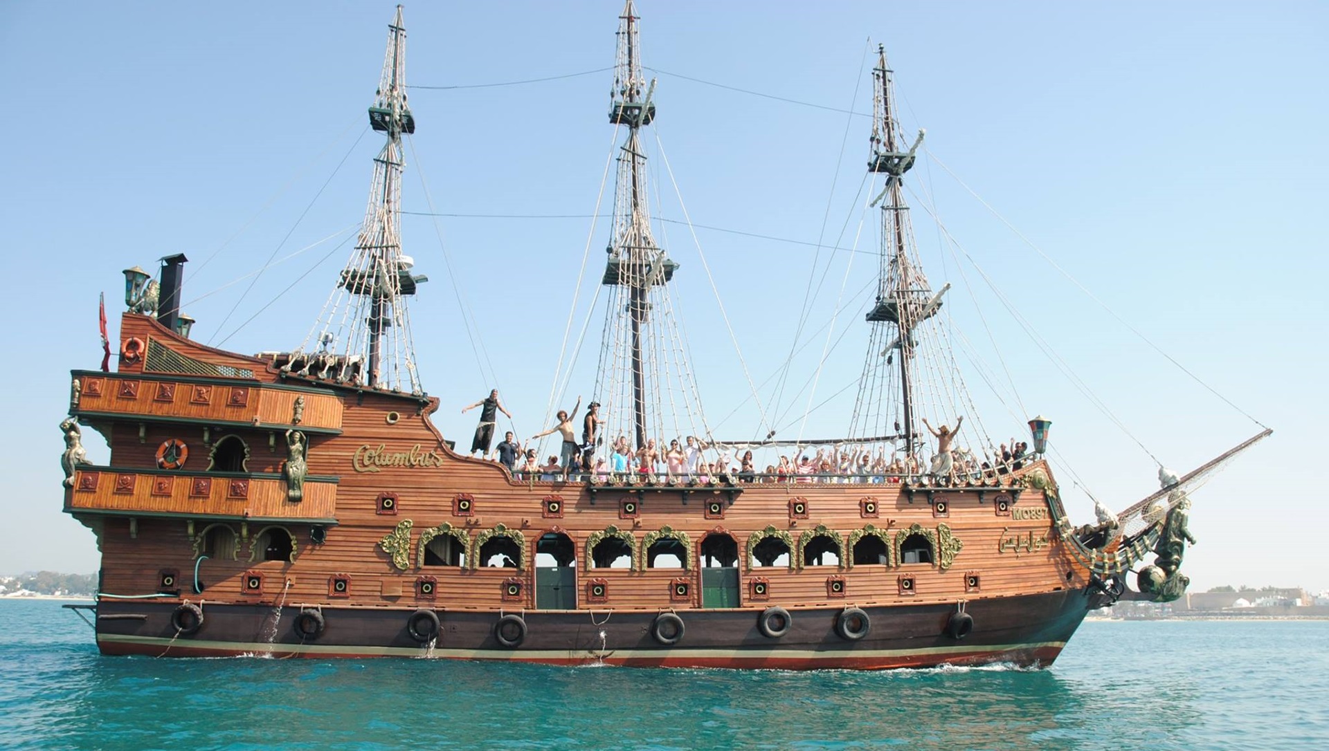 - 08 :00 : Départ vers le port Marina pour balade en mer en bateau des pirates vers l’île aux flamants roses." Jeux, Folklore et Animation.